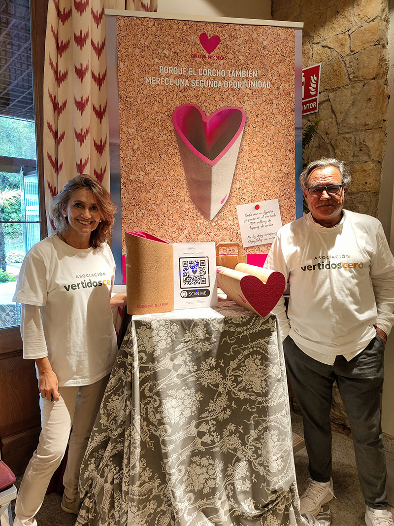 Entre los más de 1.000 asistentes a la cena solidaria, se encontraban representantes de Vertidos Cero, para concienciar de la importante labor de la recogida de los corchos de la gala para evitar que fueran desechados y terminaran en la basura.